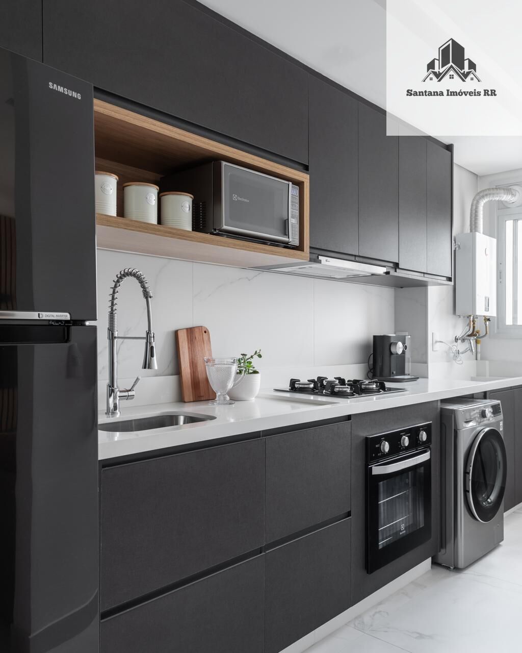 Cozinha planejada, ambientes integrados e muito bem aproveitados